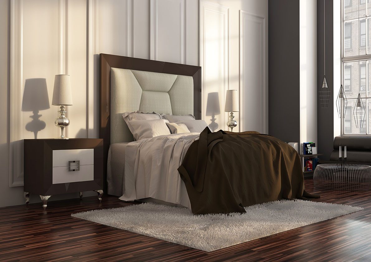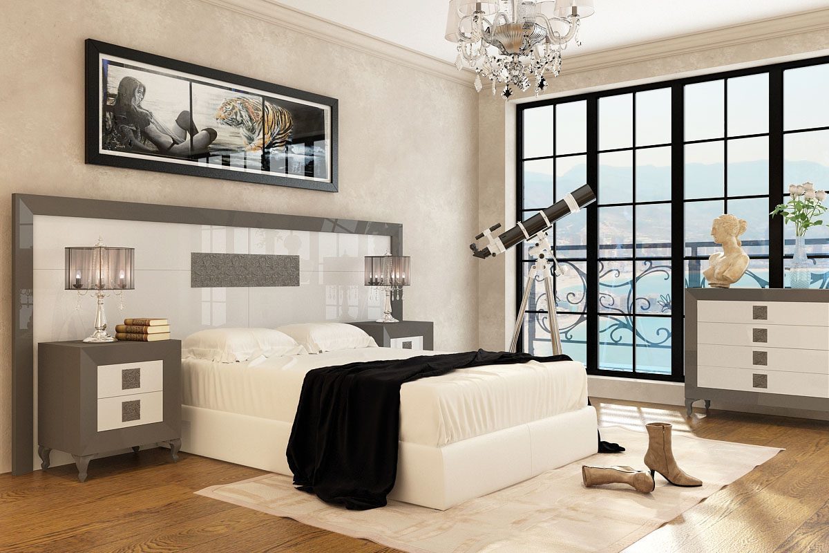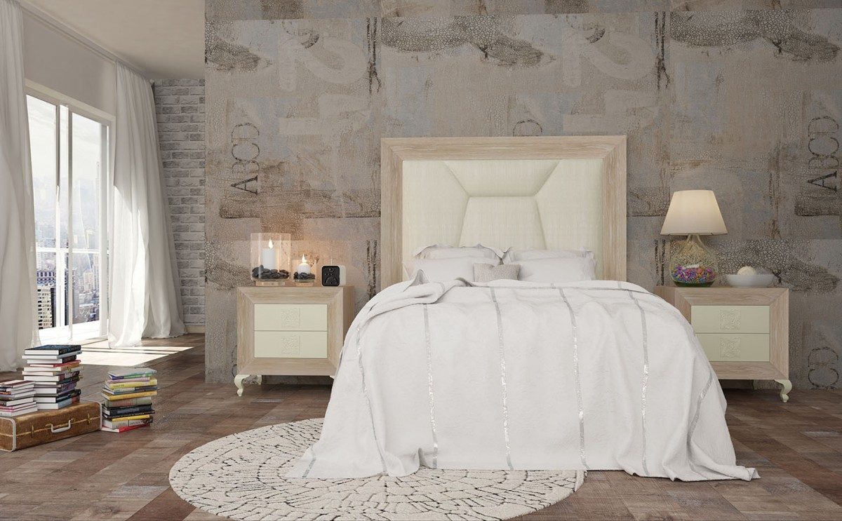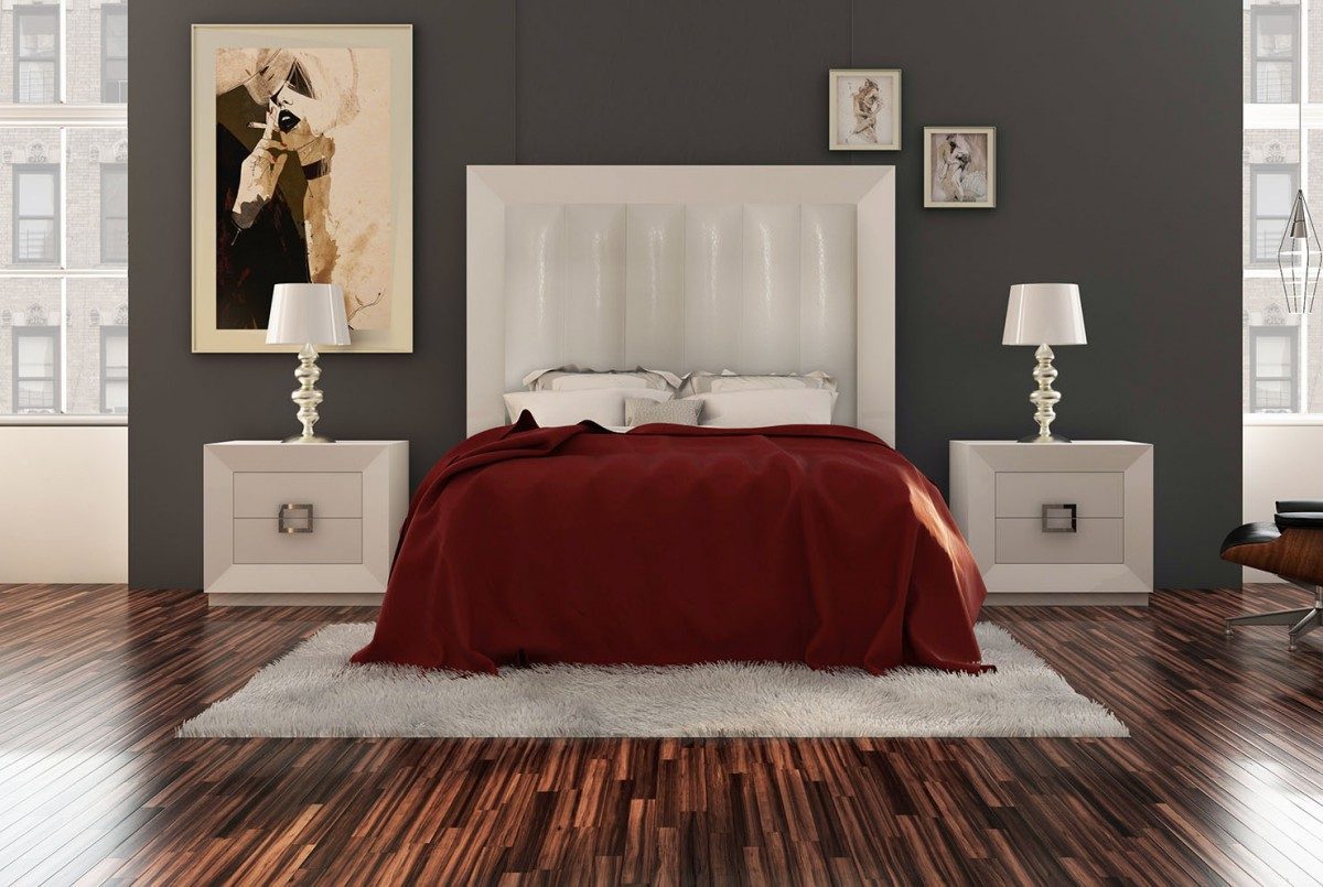 Dormitorios de alta decoración , combinando madera natural de roble con lacas o lacas alto brillo . Calidad , diseño y precio no van reñidos . Detalles de la madera natural , tallas , patas …hacen de la colección BASIK un mueble único