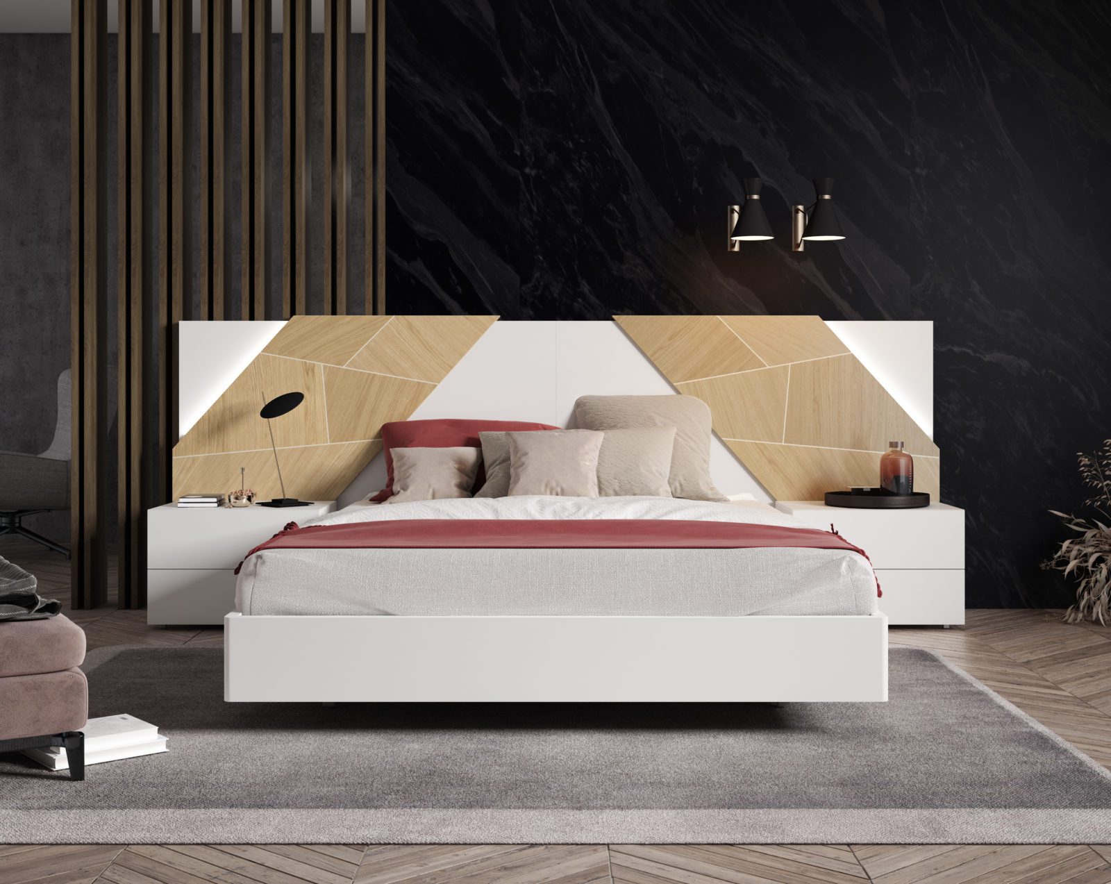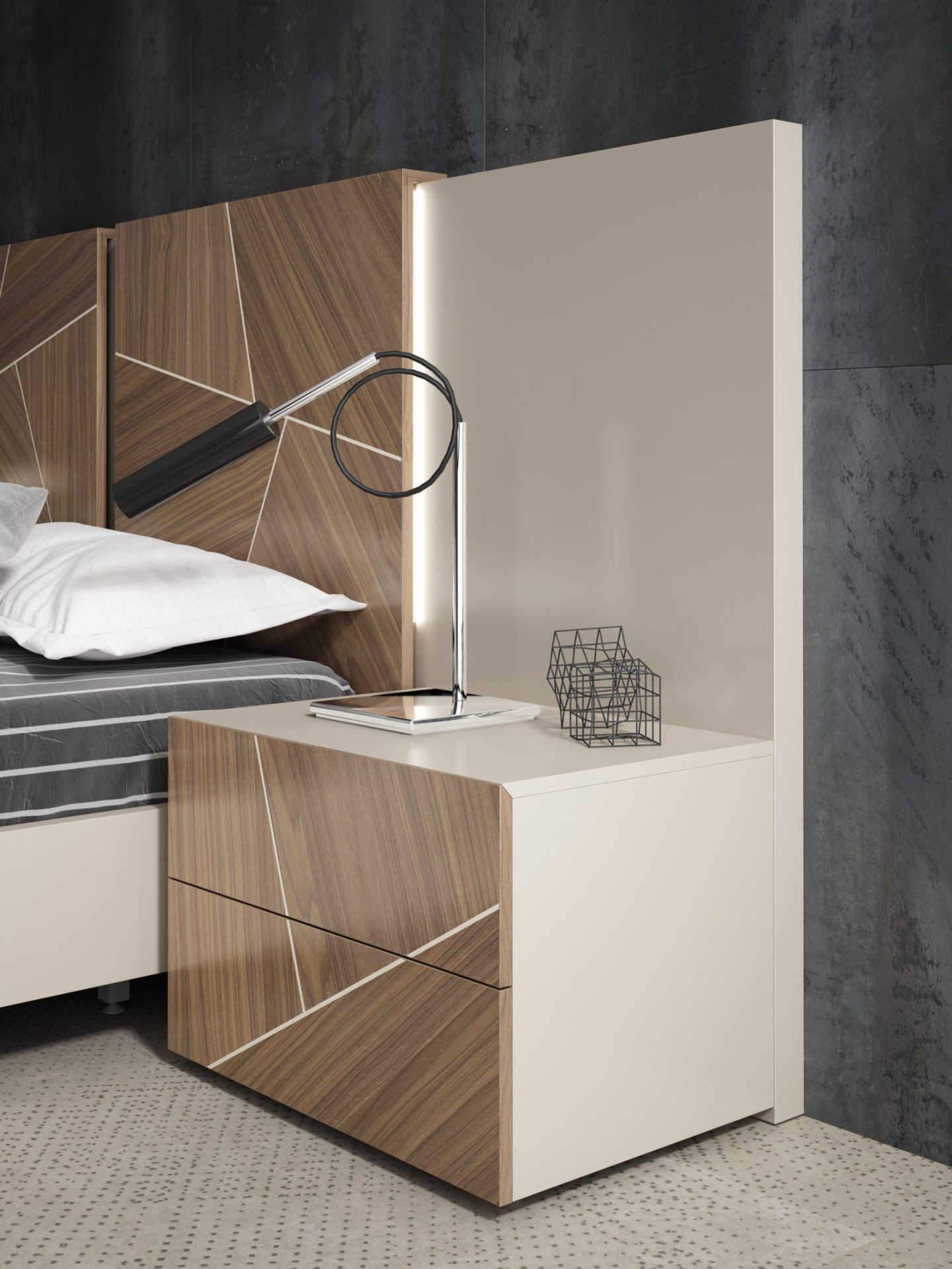 concebido por un tetris de piezas trabajadas y montadas una a una creando superficies exquisitas, expresivas , armónicas, enérgicas y con un sentido innato de las proporciones. Diseño funcional que ofrece soluciones elegantes e idílicas, cuyo contendio estético funcional permite soluciones para todos los espacios.