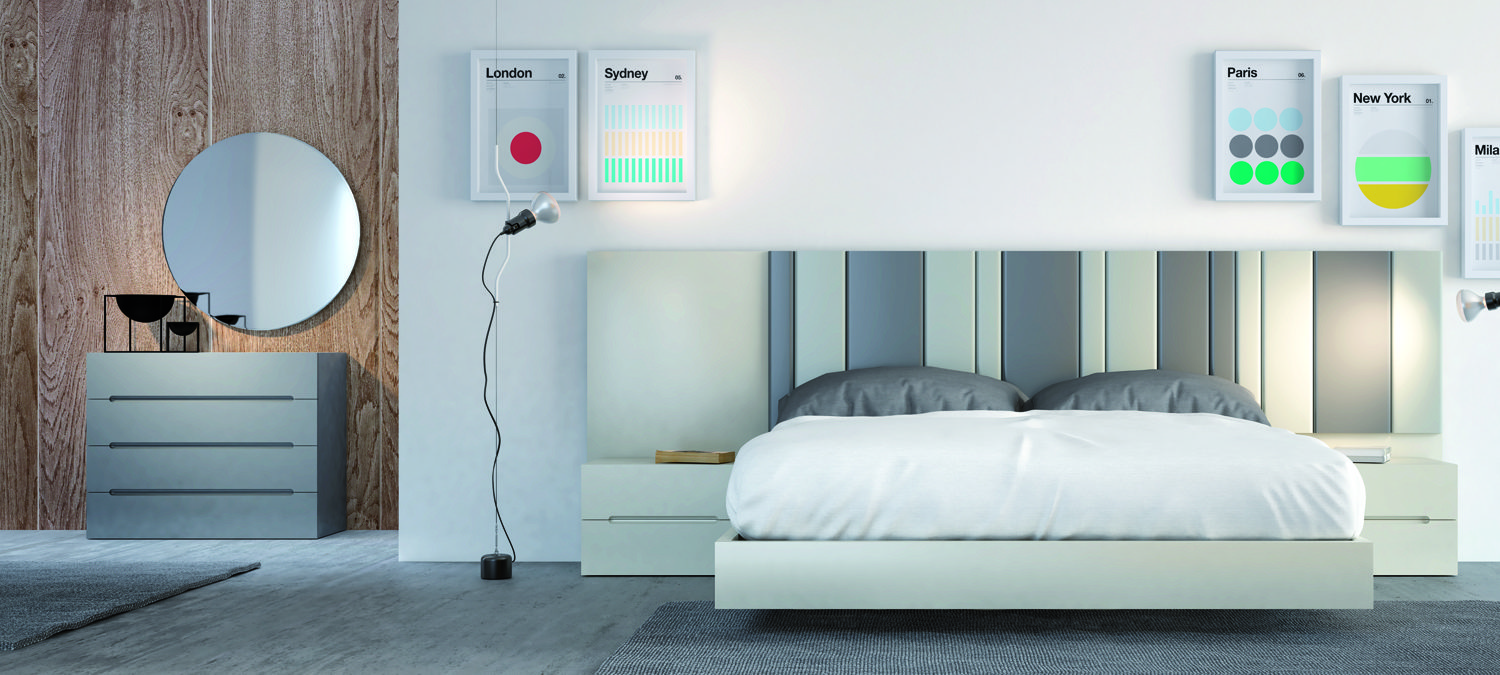 Dormitorios modernos de líneas rectas , madera y lacados naturales