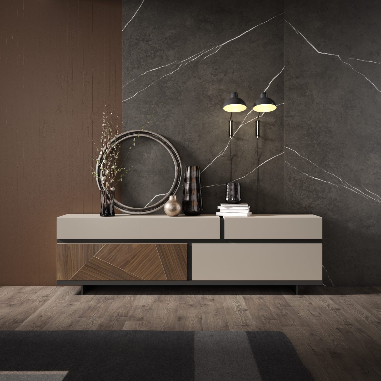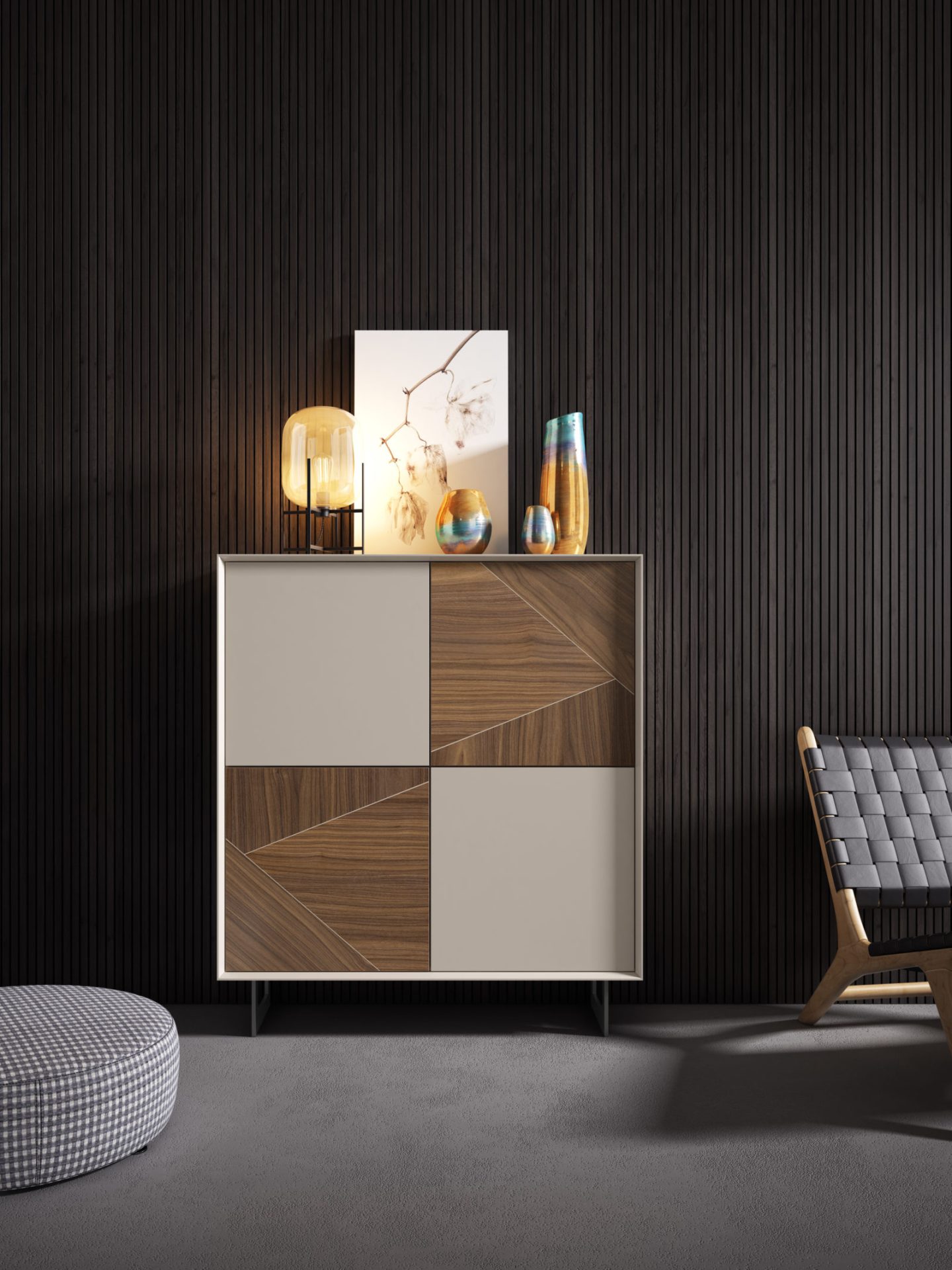 concebido por un tetris de piezas trabajadas y montadas una a una creando superficies exquisitas, expresivas , armónicas, enérgicas y con un sentido innato de las proporciones. Diseño funcional que ofrece soluciones elegantes e idílicas, cuyo contendio estético funcional permite soluciones para todos los espacios.